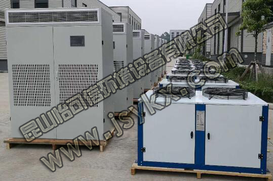 在傳統的恒溫恒濕空調系統設計中,在溫度和濕度的控制上,機組有風冷和水冷型兩種,配備有多級電加熱器和電極加濕罐及微電腦控制器。在冷卻祛濕工況條件下,蒸發盤管使空氣溫度低于露點溫度而去濕,通過加熱器的再熱控制室內溫度保持在設定值。該類機組由于冷量的調節一般僅二檔或三檔,機組出口空氣的露點溫度不易穩定,對室內相對濕度的控制能力較低,一般宜用于相對濕度控制精度在±5%的試驗室,目前大多采用了該種定型產品。簡單來說就是冷卻、加溫、除濕的過程。雖然效果比較明顯,但是很顯然這個過程的當中的空調能耗會比較大,尤其在濕度比較高的環境下,既要保證除濕的效果,又要保證預設的溫度,此時的耗能量將遠遠大于一般機房空調的耗能量。為了避免這種情況,再設計上可以將室外空氣處理到機器露點再同室內回風混合,進入主空調箱干冷卻送風,把送風溫差控制在相應的規范范圍內;直到環境內冷負荷減小至一定數值,再用冷卻盤管的冷凍水流量或進水溫度的改變來調節冷量,進一步減小送風溫差。在這類空調工程設計中,應該對其能耗和節能問題給予特別重視,提倡棄用二次加熱,以降低能耗。